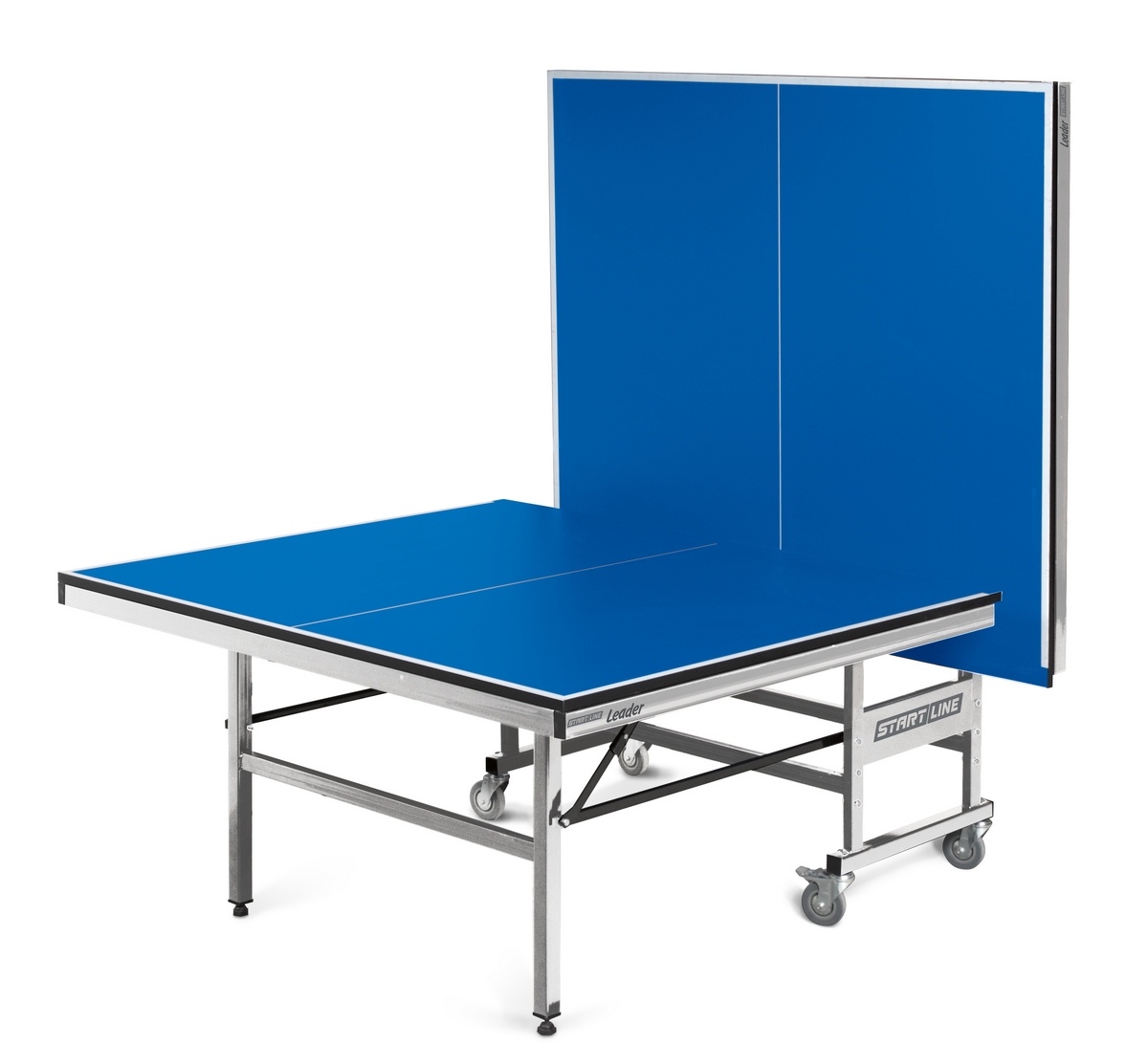 из стального профиля 40х40 мм и 40х25 мм. Раскосы металические с фиксаторами надежно удерживают теннисный стол. Металлические детали имеют полимерное покрытие. Боковые опоры регулируются по высоте. |